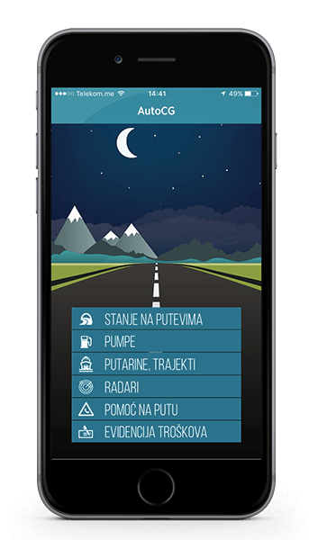 AutoCG je lični asistent za sve vozače u Crnoj Gori! Provjerite stanje na putevima, probleme koje prijavljuju korisnici, trenutne cijene goriva, potražite najbliže benzinske pumpe, pogledajte da li ima radarskih kontrola u vašoj blizini... Ukoliko imate problem na putu, jednim klikom možete pozvati najbližu službu koja pruža pomoć na putu. Takođe, možete imati svoj dnevnik troškova - za gorivo i sve druge troškove na vašem vozilu.