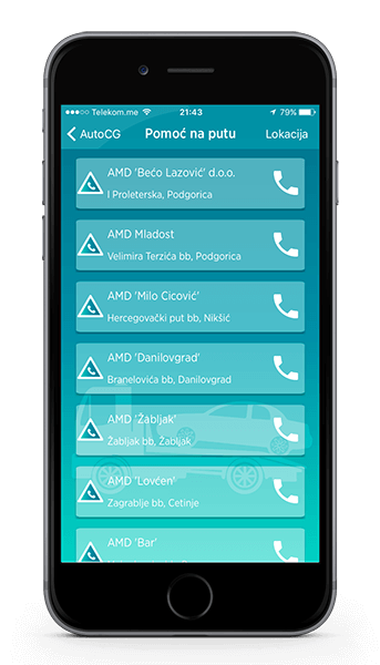 Aplikacija nudi imenik svih službi za pomoć na putevima, sa mogućnošću direktnog pozivanja željene službe. Sve službe koje su trenutno na našem spisku su one zvanične, registrovane za tu djelatnost. Sa novom nadogradnjom, dodata je lokacija svih ovih službi na mapi, te mogućnost pozivanja željene, direktno sa mape.