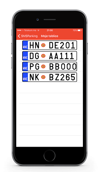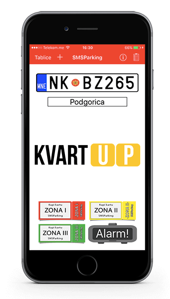Aplikacija, dostupna za iOS i Android ureðaje koja nudi jednostavno rješenje za placanje parkinga u onim gradovima (Podgorica, Nikšic, Herceg Novi i Berane) Crne Gore u kojima je moguce platiti parking slanjem SMS poruke. Pored opcija za slanje SMS-poruke, tu je i alarm koji korisnika upozorava da je prošlo 15 minuta besplatnog parkinga, kao i unos nove tablice. Moguće je sačuvati više od jedne registarske oznake, pa po potrebi, ukoliko neko posjeduje više od jednog automobila, birati registarsku oznaku i placati parking.